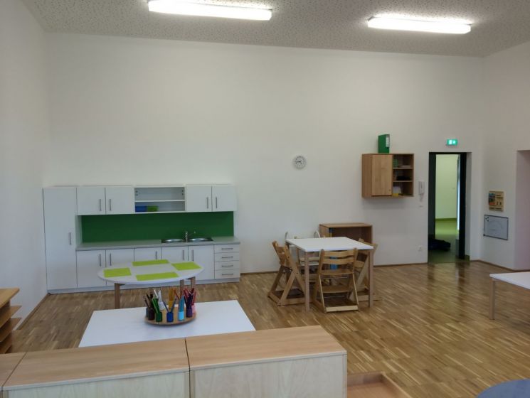Umbau eines eingruppigen in einen zweigruppigen Kinder- garten.